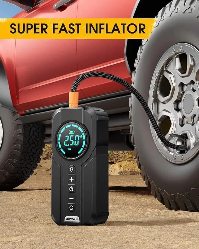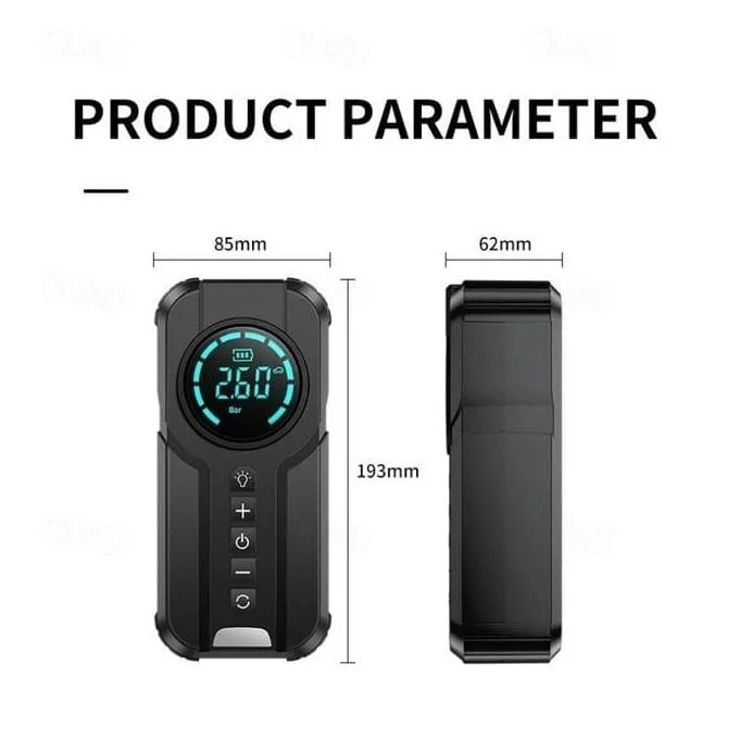 ضغط يصل إلى 150 PSI مع شاشة رقمية دقيقة. - يتوقف عن النفخ تلقائياً عند الوصول للضغط المطلوب.