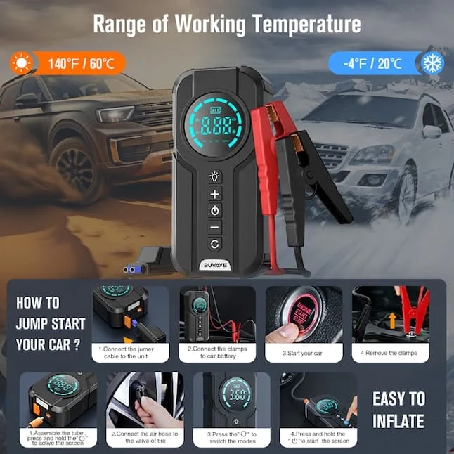 جهاز طوارئ السيارة الذكي – مضخة هواء + تشغيل بطارية السيارة + Power Bank